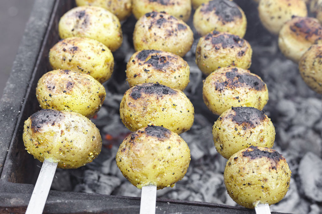 - Transpercer délicatement les pommes de terre avec un pic métallique, disposer sans un saladier, saler, poivrer et arrosez d’huile d’olives.