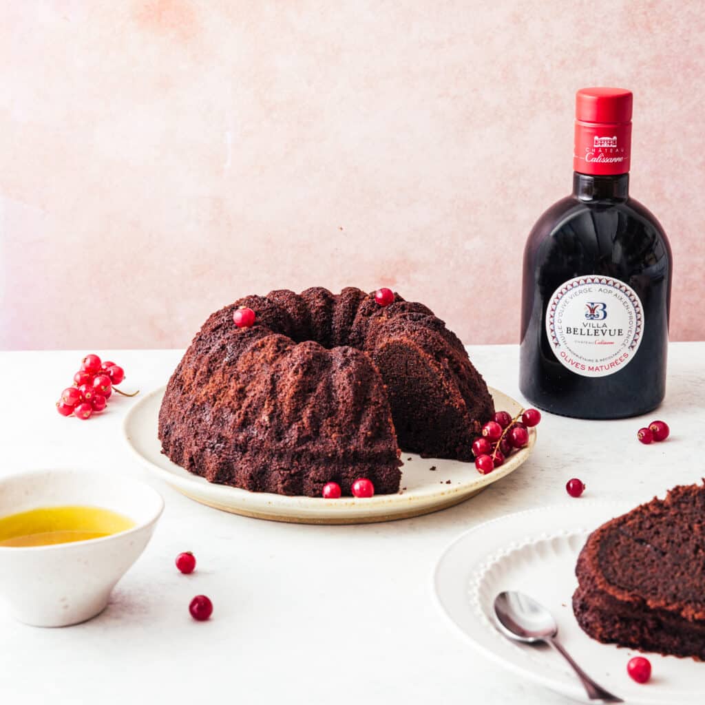 - Laissez refroidir pendant 15 minutes et démoulez le gâteau. Ce gâteau au chocolat et à l’huile d’olive se conserve 3 jours bien emballé.